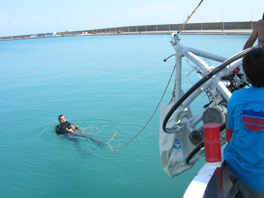 Photos: Geochemical, oceanographic, and geophysical surveys as well as the deployment and recovery of a benthic observatory: the Gas Monitoring Module (GMM), that monitored gas seepage ans oceanographic parameters for 101 days in Katakolo Bay.